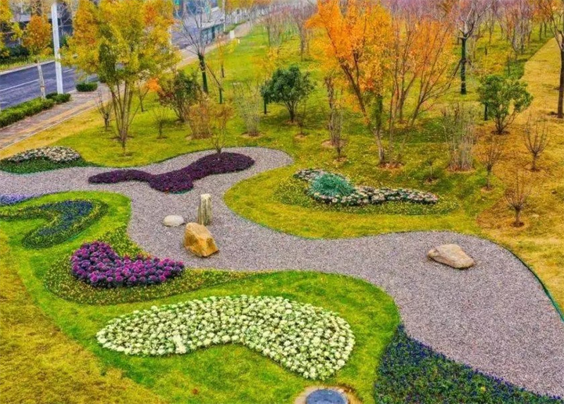 綠化苗木方面選擇冠幅大、形態(tài)優(yōu)美、生長(zhǎng)良好的苗木,袋裝苗和圍苗有利于成活和即時(shí)效果。
